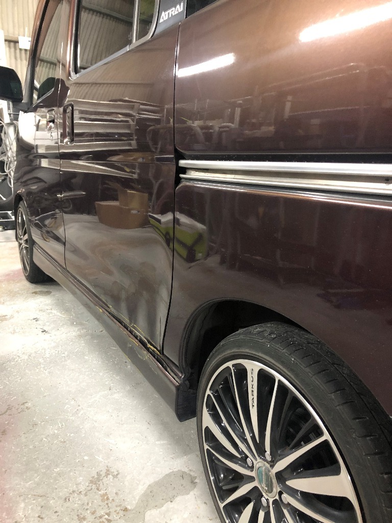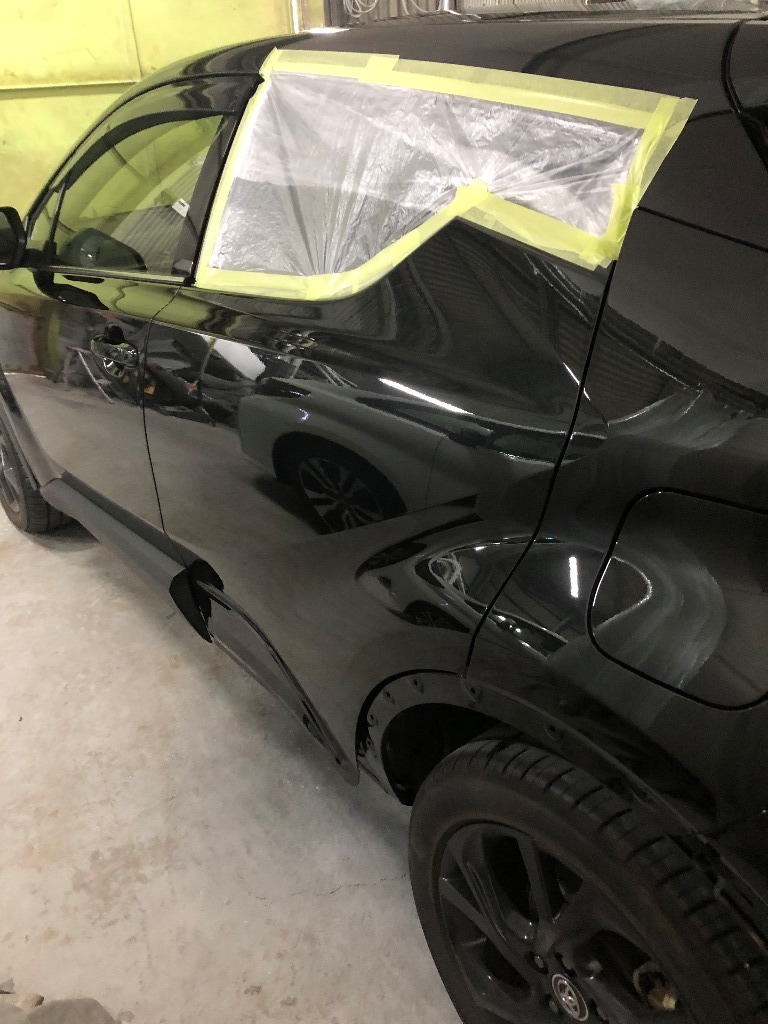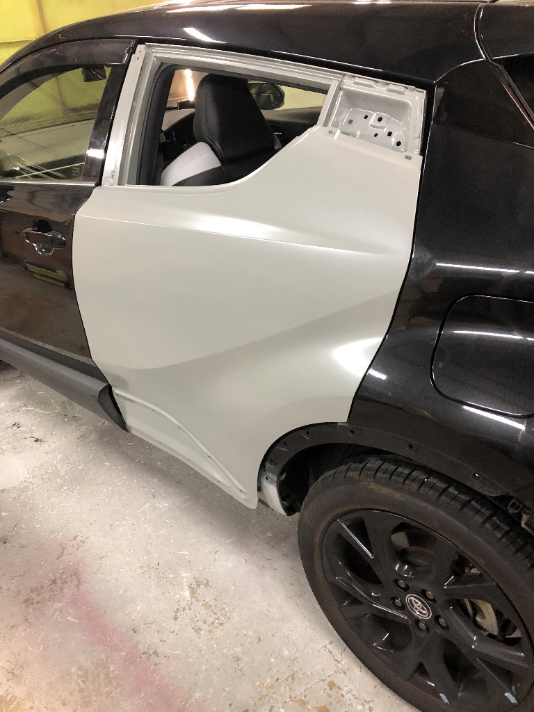 保険修理でリアドアを新品に交換してペイント後、組付け作業